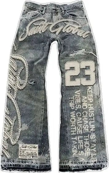 Men's Wing Print Jeans – Vintage Gothic Oversized Hip Hop Wide Pants