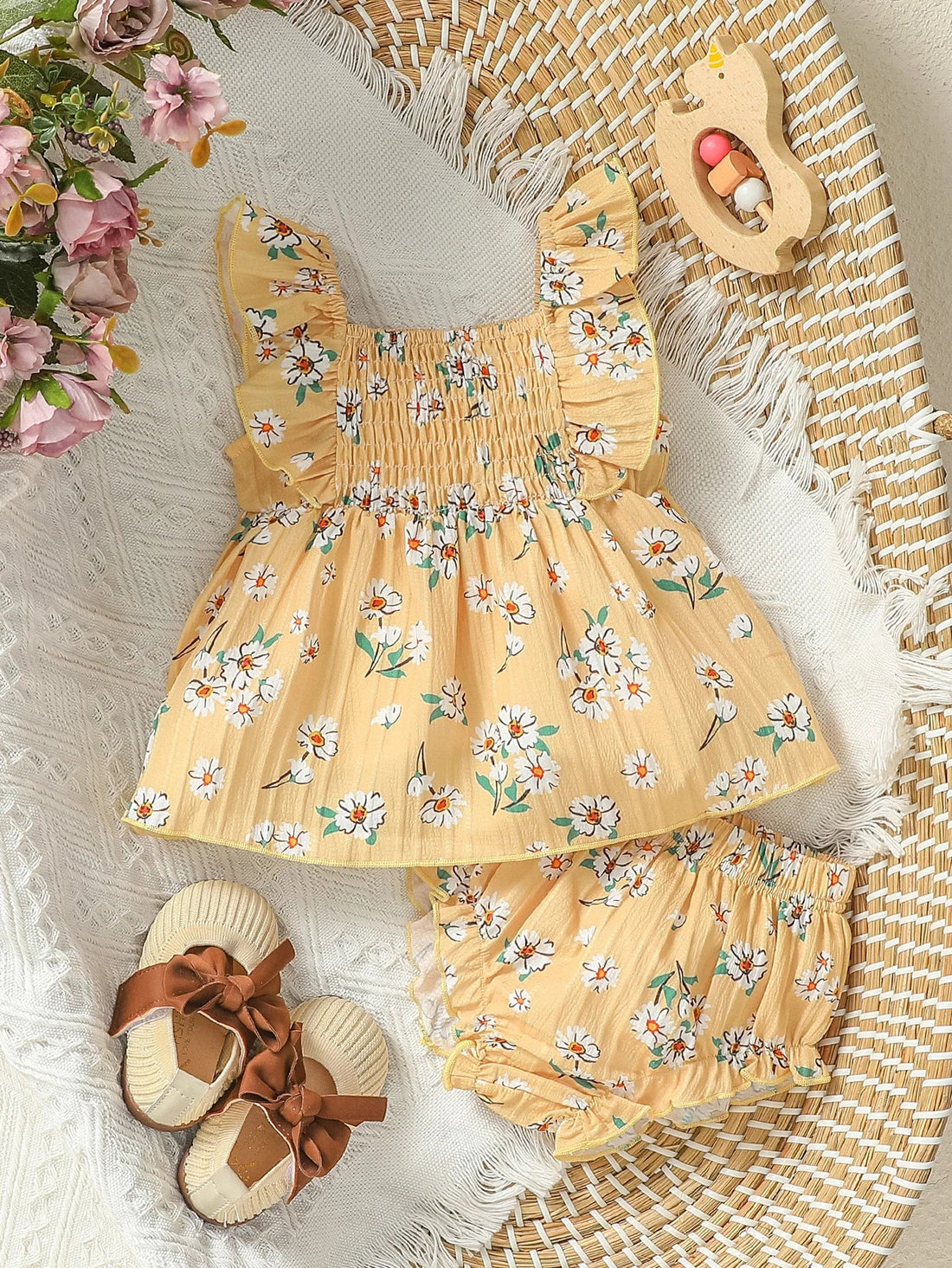 Baby Girls Autumn Chrysanthemum Sleeveless Two-Piece Set