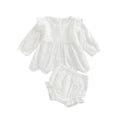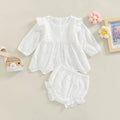 Includes long sleeve T-shirt and elastic ruffle shorts for a complete outfit.