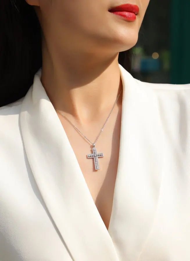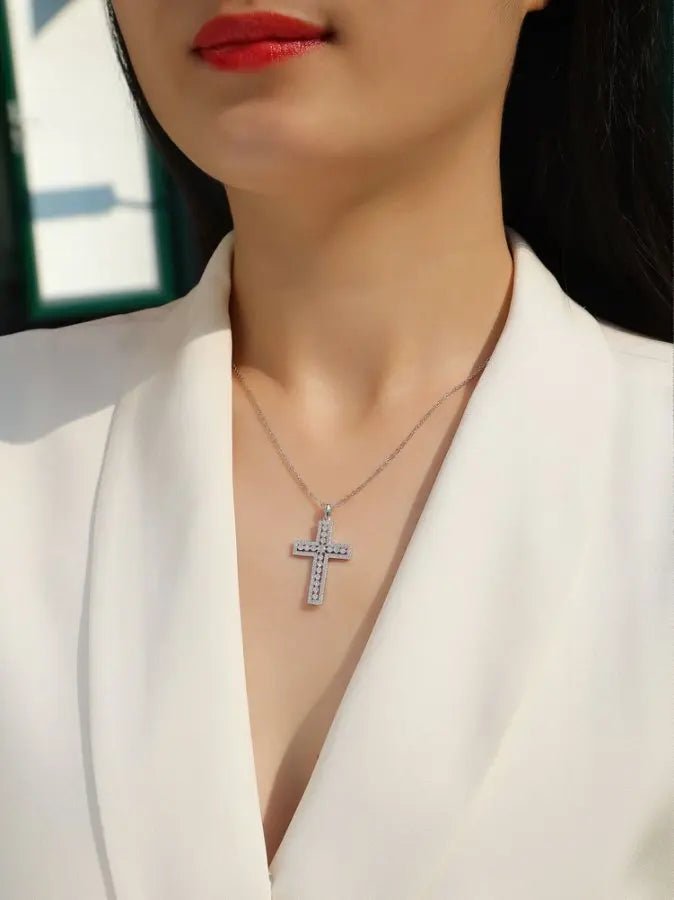 Add timeless elegance to your look with the Shiny Moissanite Cross Necklace. Featuring a 0.98CT moissanite stone setting in premium S925 sterling silver, this pendant combines everyday sparkle with lasting style. Designed to be hypoallergenic and skin-friendly, it’s perfect for both men and women. Whether worn daily, layered with other pieces, or gifted for a special occasion, this necklace is a trendy yet classic symbol of faith and fashion.