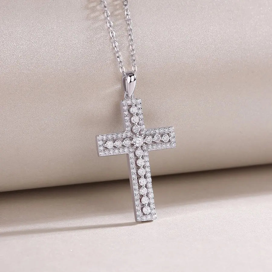 Moissanite Cross Necklace – 0.98CT S925 Silver Pendant