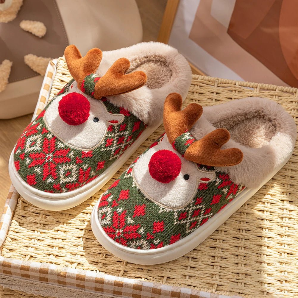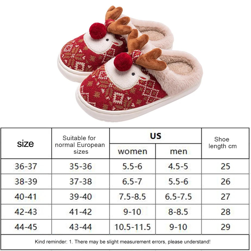 Fluffy Christmas Reindeer Slippers – Unisex Winter Plush Indoor House Shoes, Warm Anti-Slip Slides for Women & Men