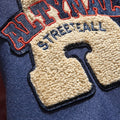 - Classic baseball collar and ribbed cuffs for a secure fit