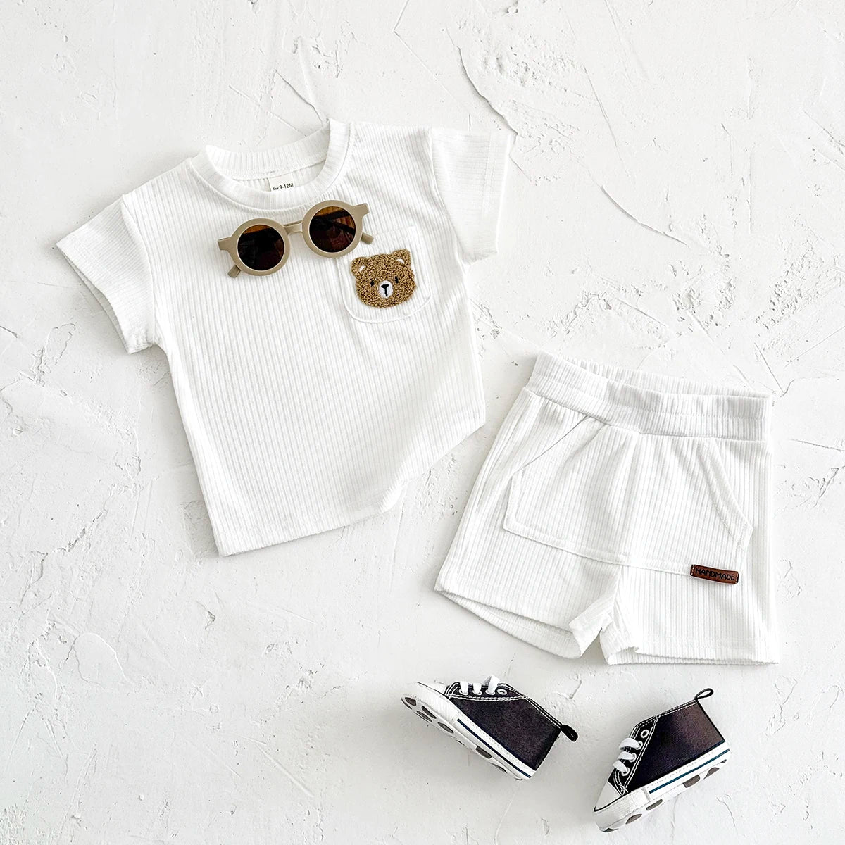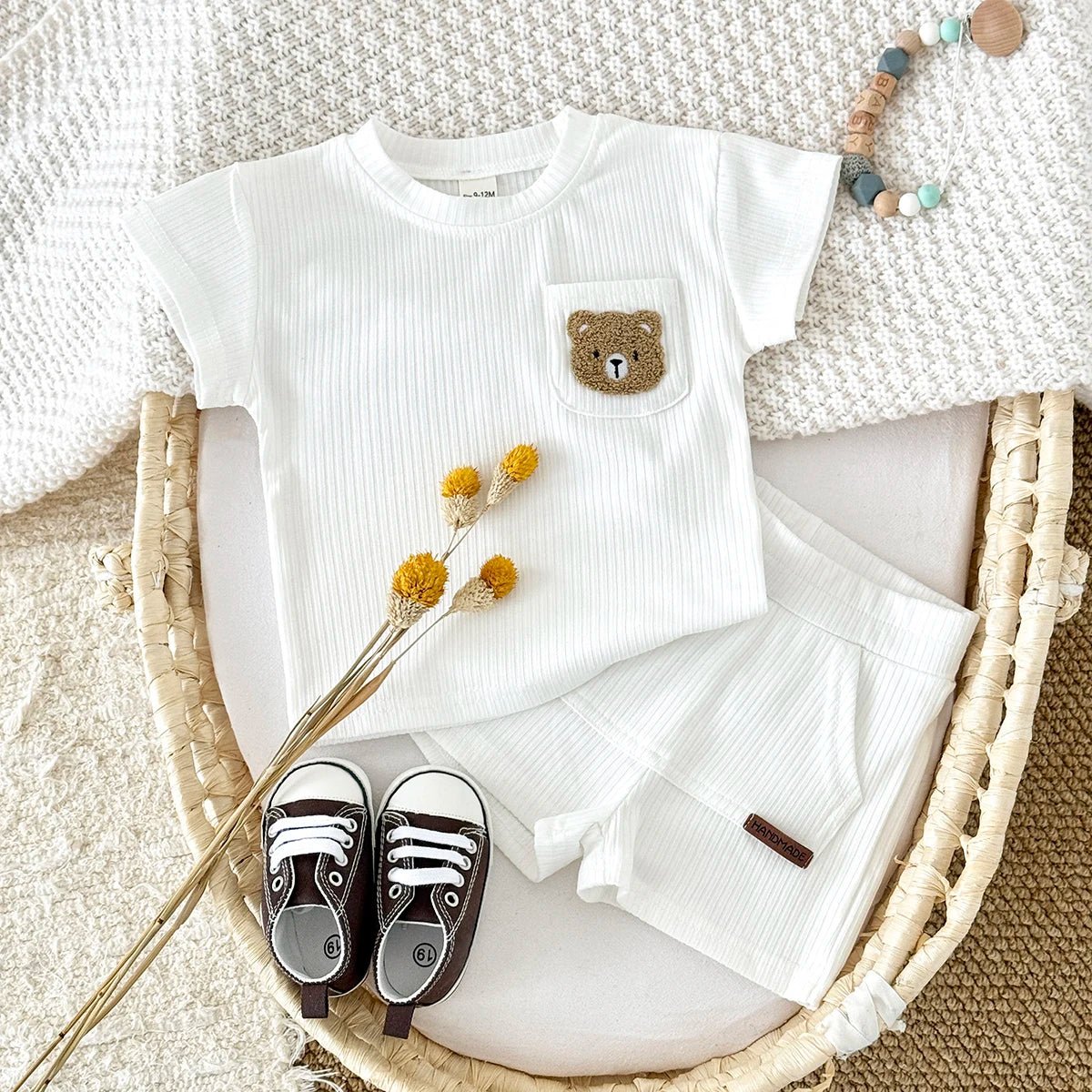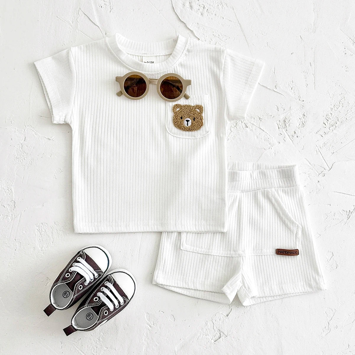 2PCS Baby Clothes Set with Bear Tee and Shorts