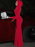 Women’s Hooded Maxi Dress – Elegant Long-Sleeve Bodycon Party Gown