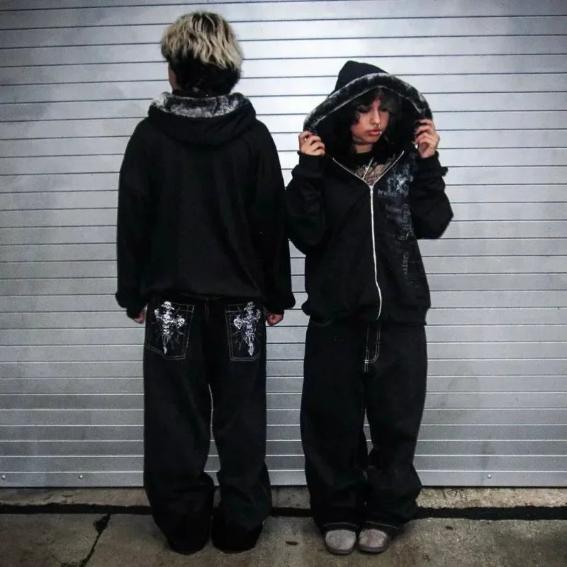 The American Gothic Rock Skeleton Oversized Jeans Men are more than just pants – they’re a statement piece. Designed for fashion-forward men who love street culture and edgy style, these jeans stand out in every setting.