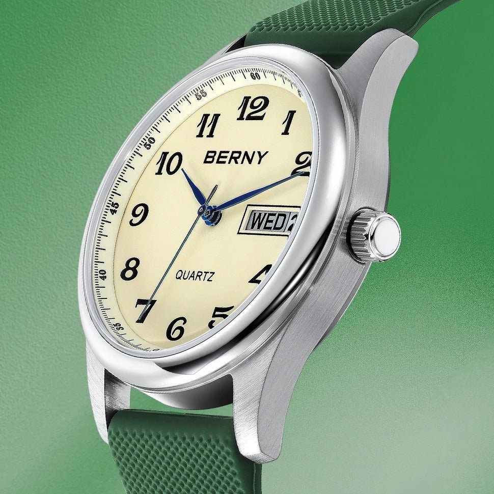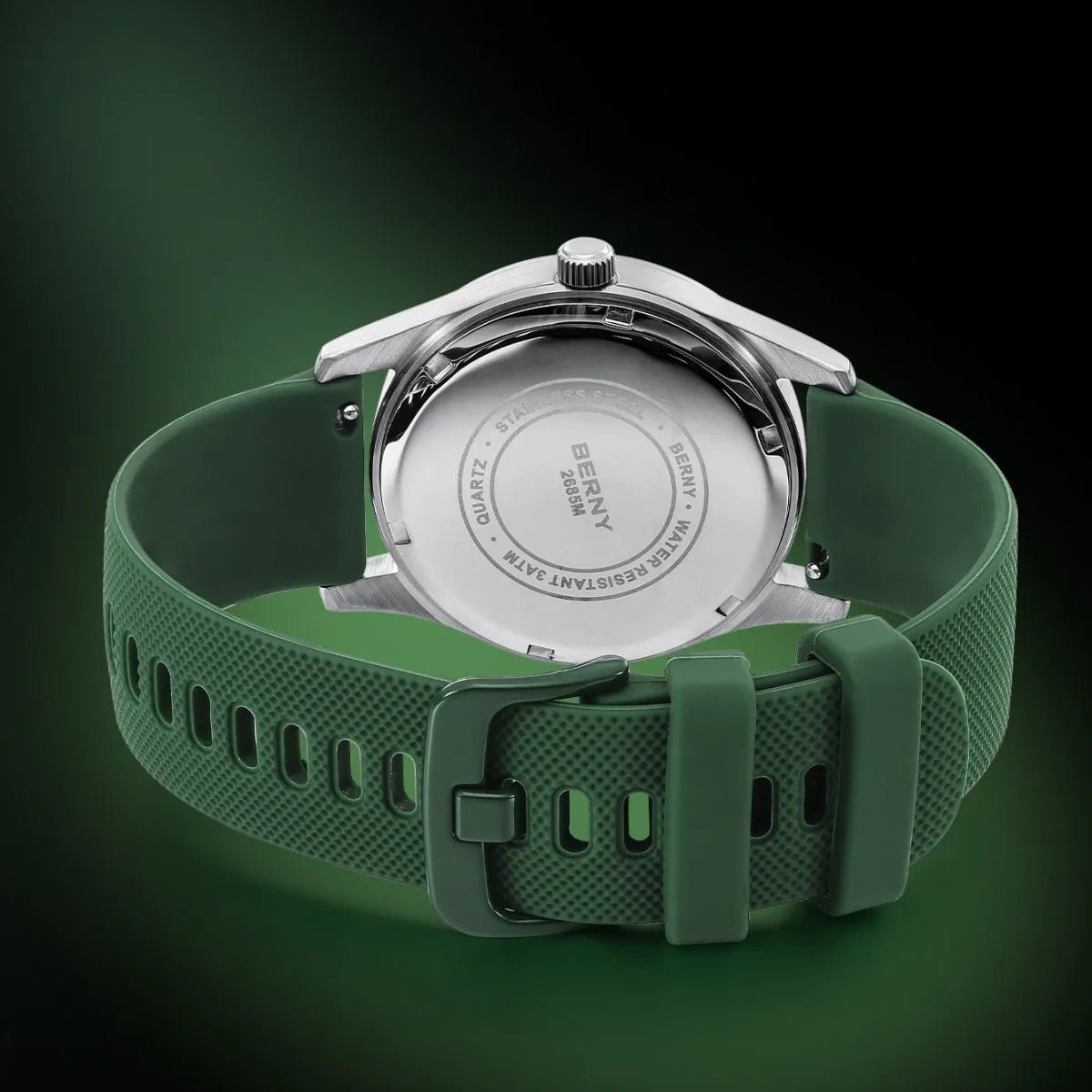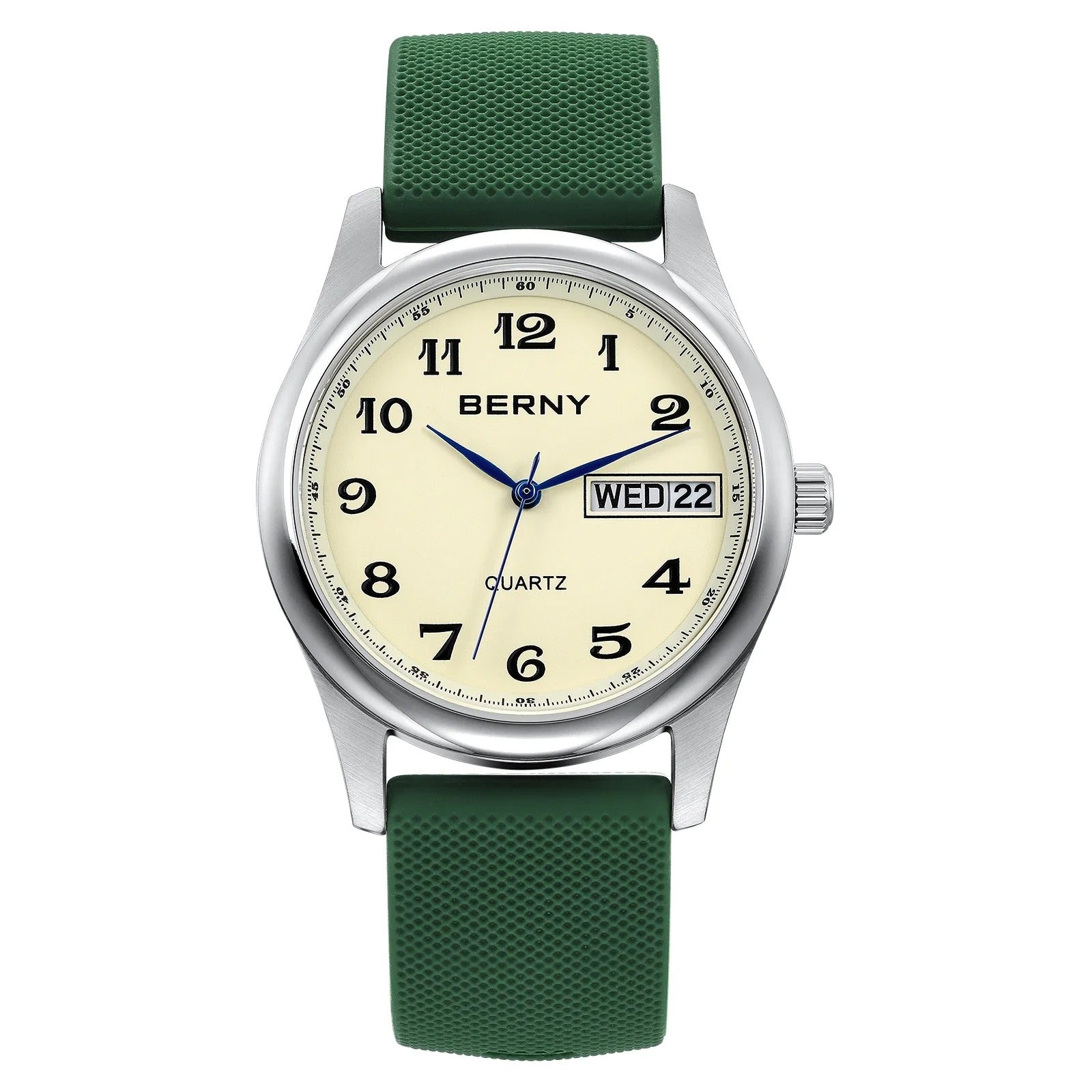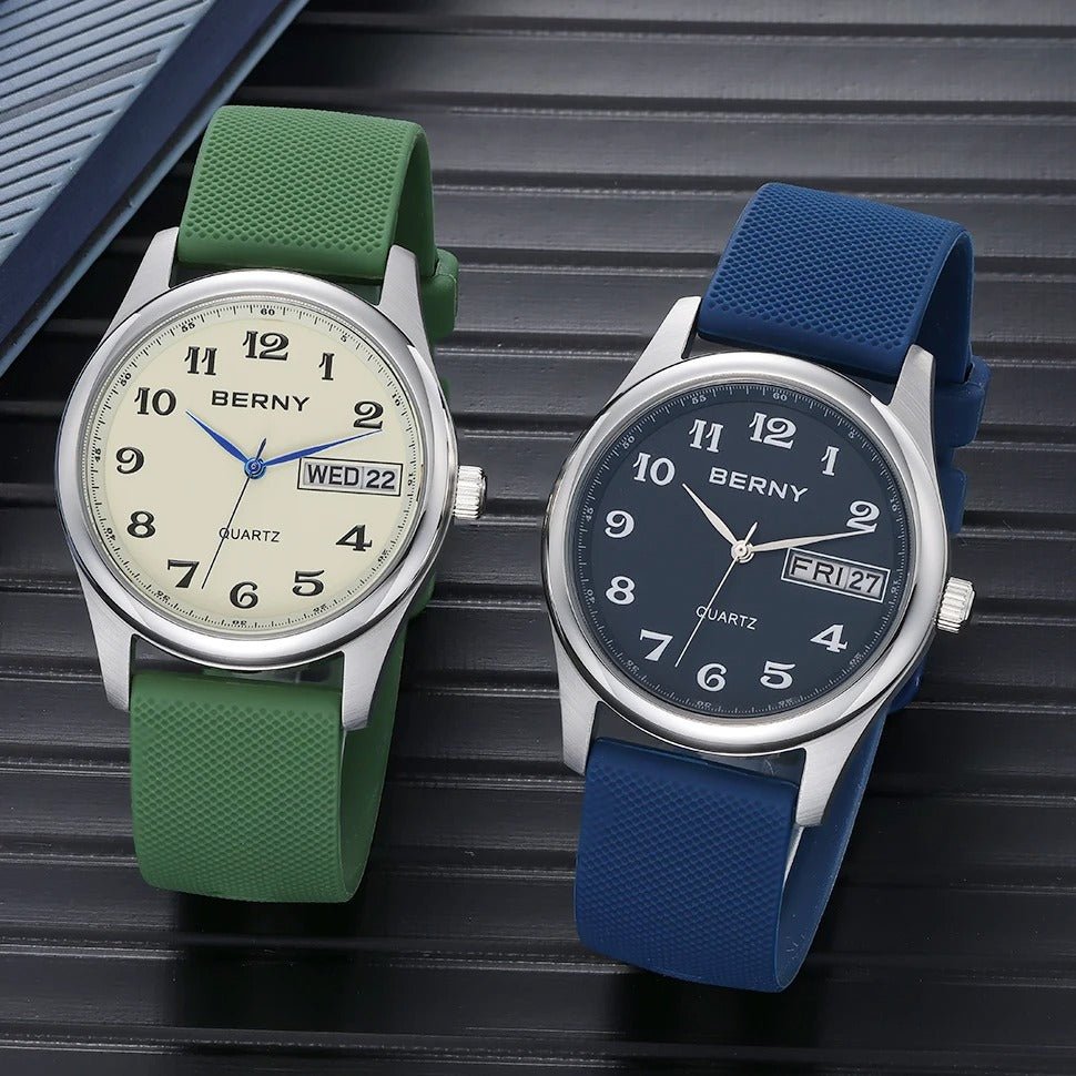 Refined and practical, this men’s quartz watch blends timeless design with modern functionality. Featuring a durable stainless steel case and a soft, flexible silicone strap, it ensures long-lasting comfort for everyday wear or formal occasions. The easy-to-read dial includes a week calendar, adding convenience to your daily routine. Its waterproof design makes it a reliable companion for all weather conditions, while the precise quartz movement guarantees accurate timekeeping. Perfect for those who appreciate both style and utility in a single accessory.
