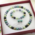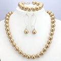 Christmas Jewelry Gift Set – 12mm Gold Round Shell Pearl Necklace, Bracelet & Earrings