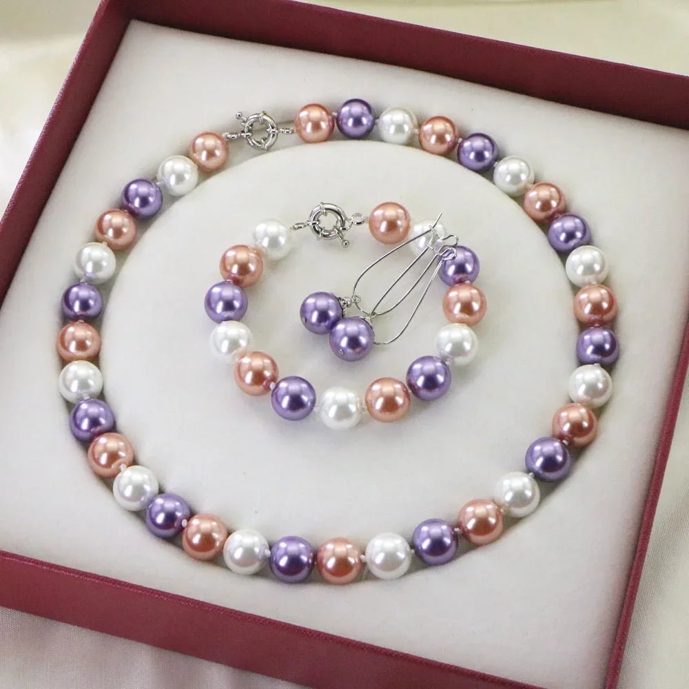 Celebrate the festive season with this stunning 12mm Gold-Color Shell Pearl Jewelry Set, designed to add elegance and charm to any outfit. Perfect for women and girls, this beautifully crafted set includes a matching necklace, bracelet, and earrings — ideal for Christmas gifting or completing your holiday look. Featuring high-quality round shell pearls with a lustrous finish, this timeless jewelry design complements both casual and formal styles, making it a versatile addition to any collection.