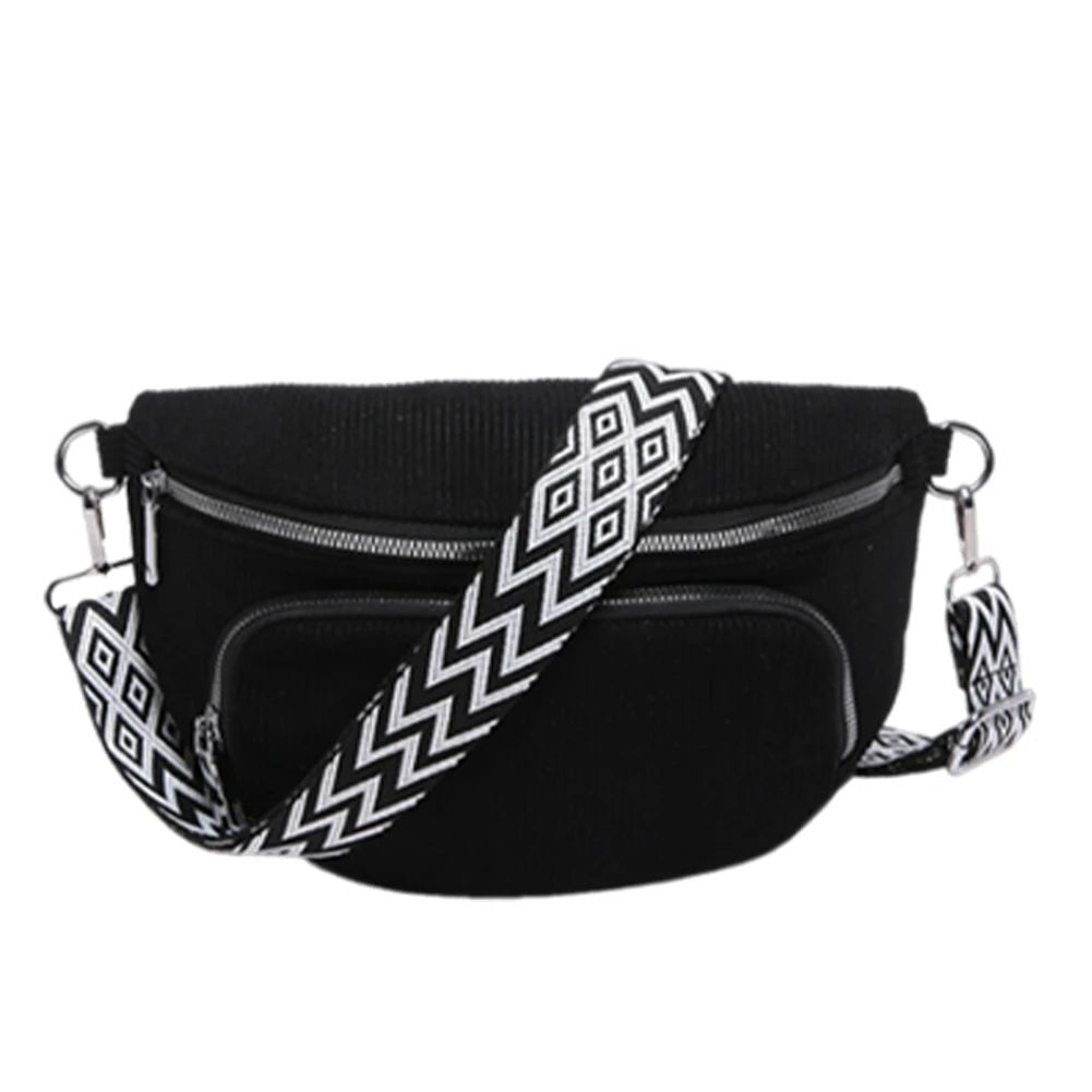 Corduroy Chest Bag – Unisex Fashion Fanny Pack with Wide Strap