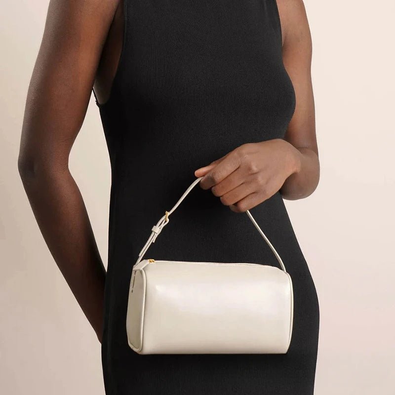 Women’s Cowhide Pencil Case Bag – Barrel Handbag & Casual Armpit Purse