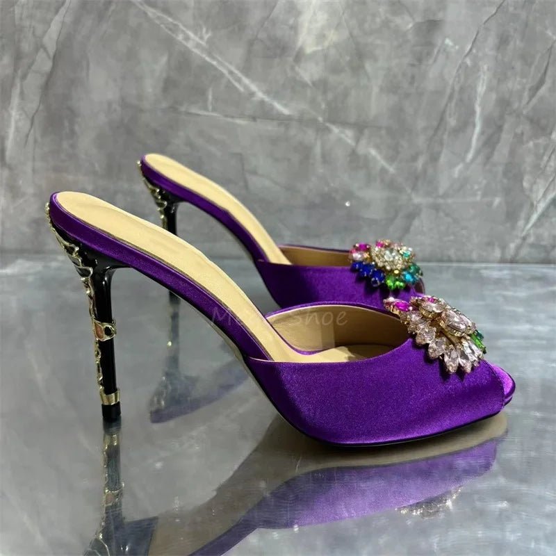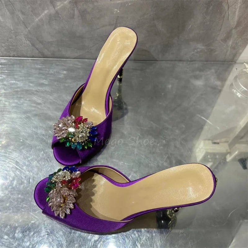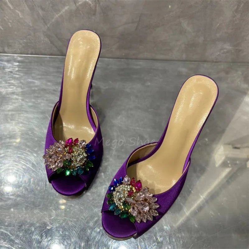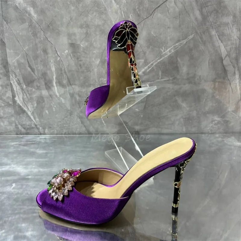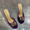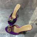 Crystal Stiletto High Heels Purple Velvet Slippers