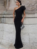 Dulzura Black One-Shoulder Maxi Dress – Women’s Elegant Bodycon Evening Gown