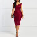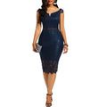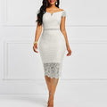 Women’s Elegant Lace Bodycon Dress – Mid-Calf Hollow Out Evening Party Dress