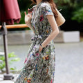 Women’s Vintage Printed A-Line Midi Dress – Elegant V-Neck Summer Outfit