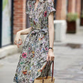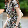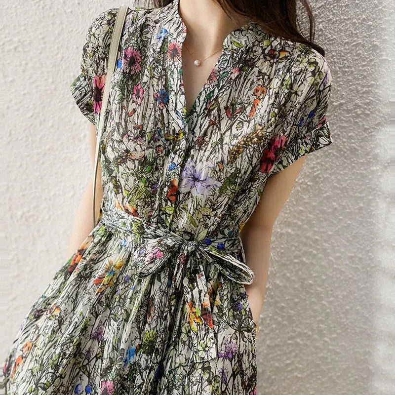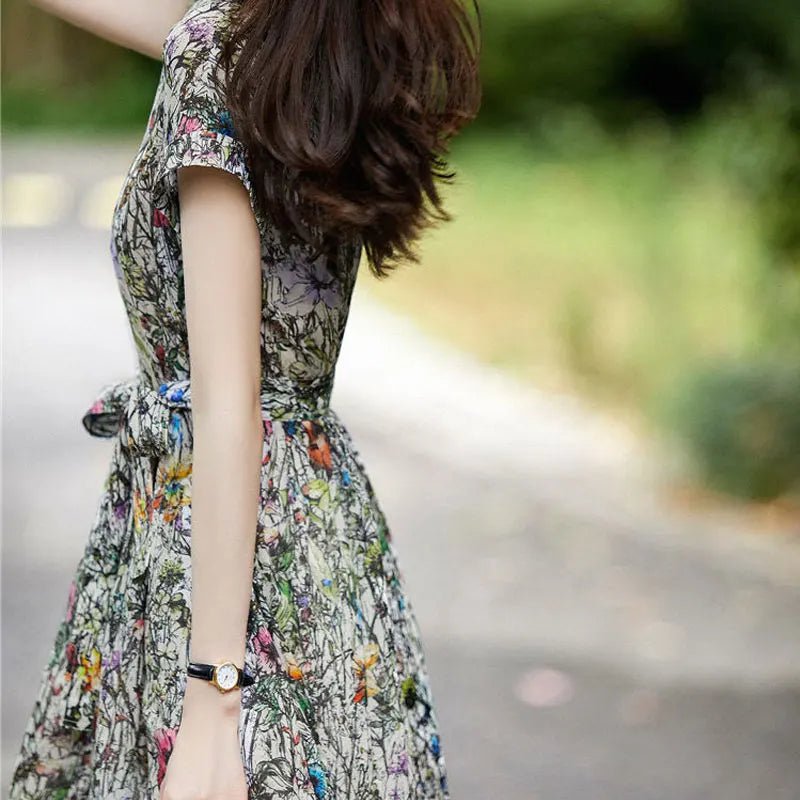 Stay effortlessly stylish this summer with this women’s vintage printed A-line midi dress, featuring a classic V-neckline, short sleeves, and a drawstring bow waist for a feminine, flattering silhouette. Made from lightweight, breathable fabric, this dress is perfect for commuting, brunches, casual outings, and summer events.
