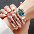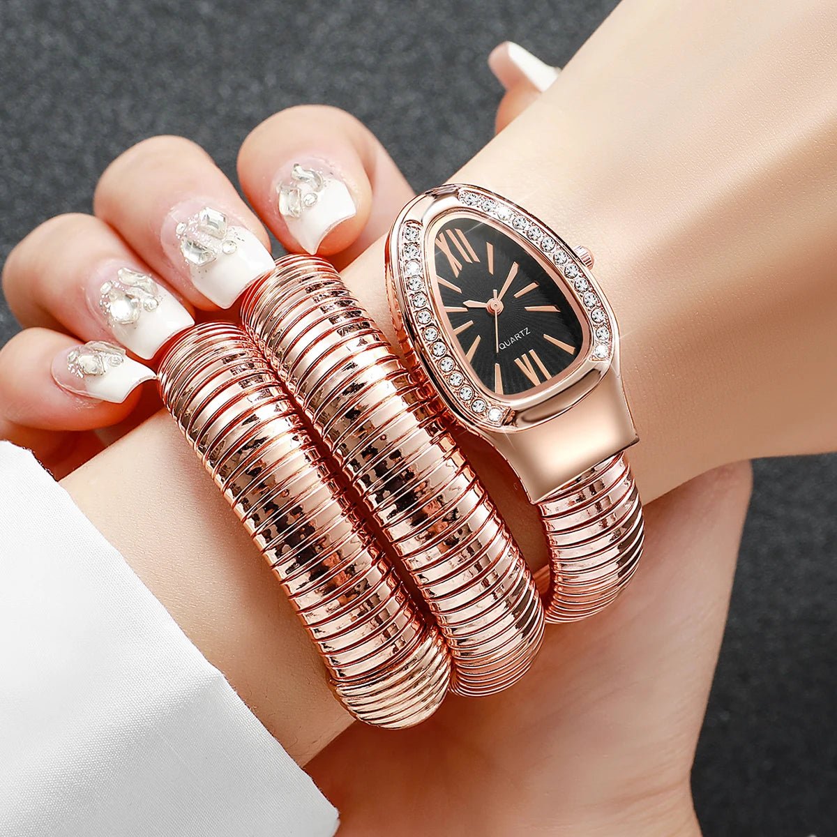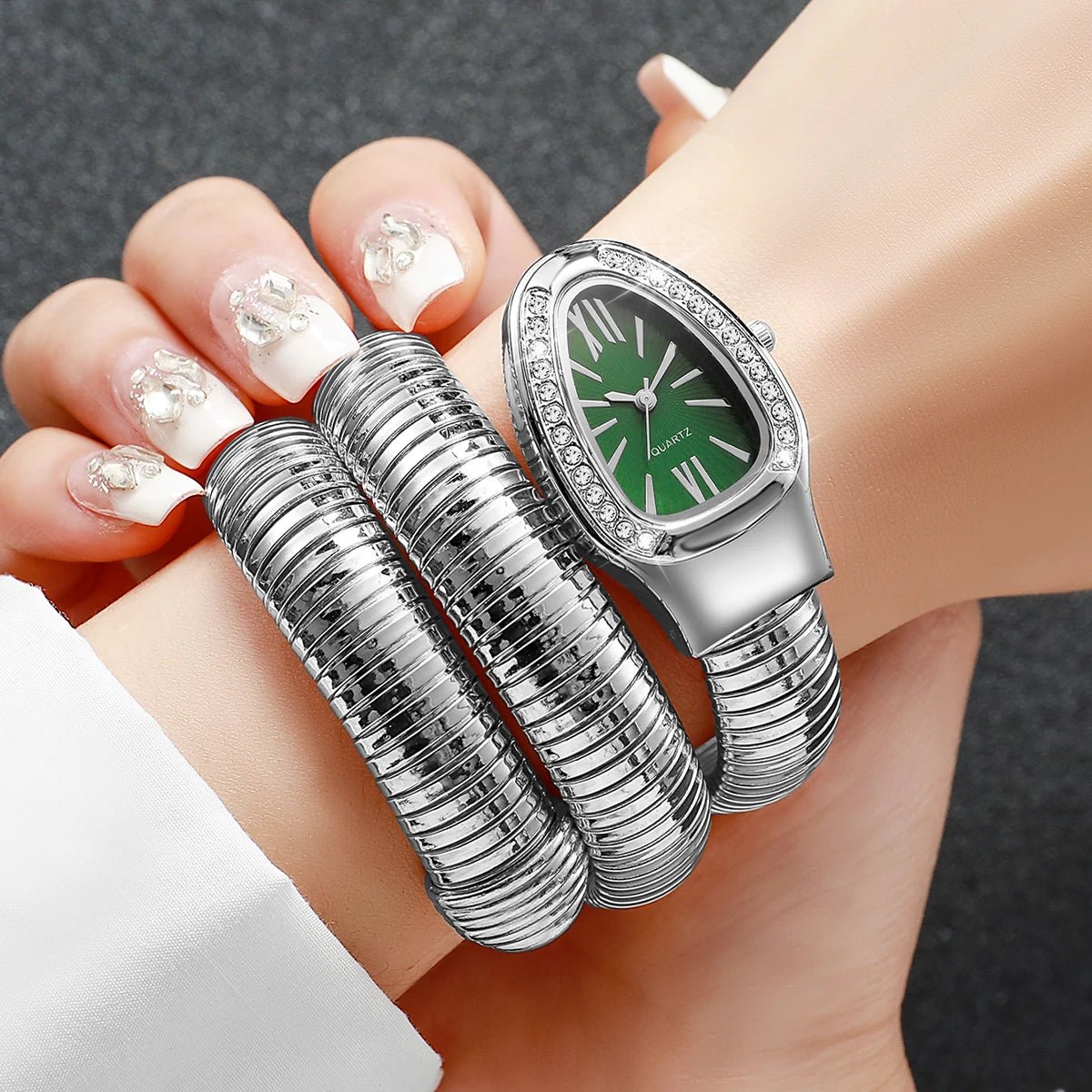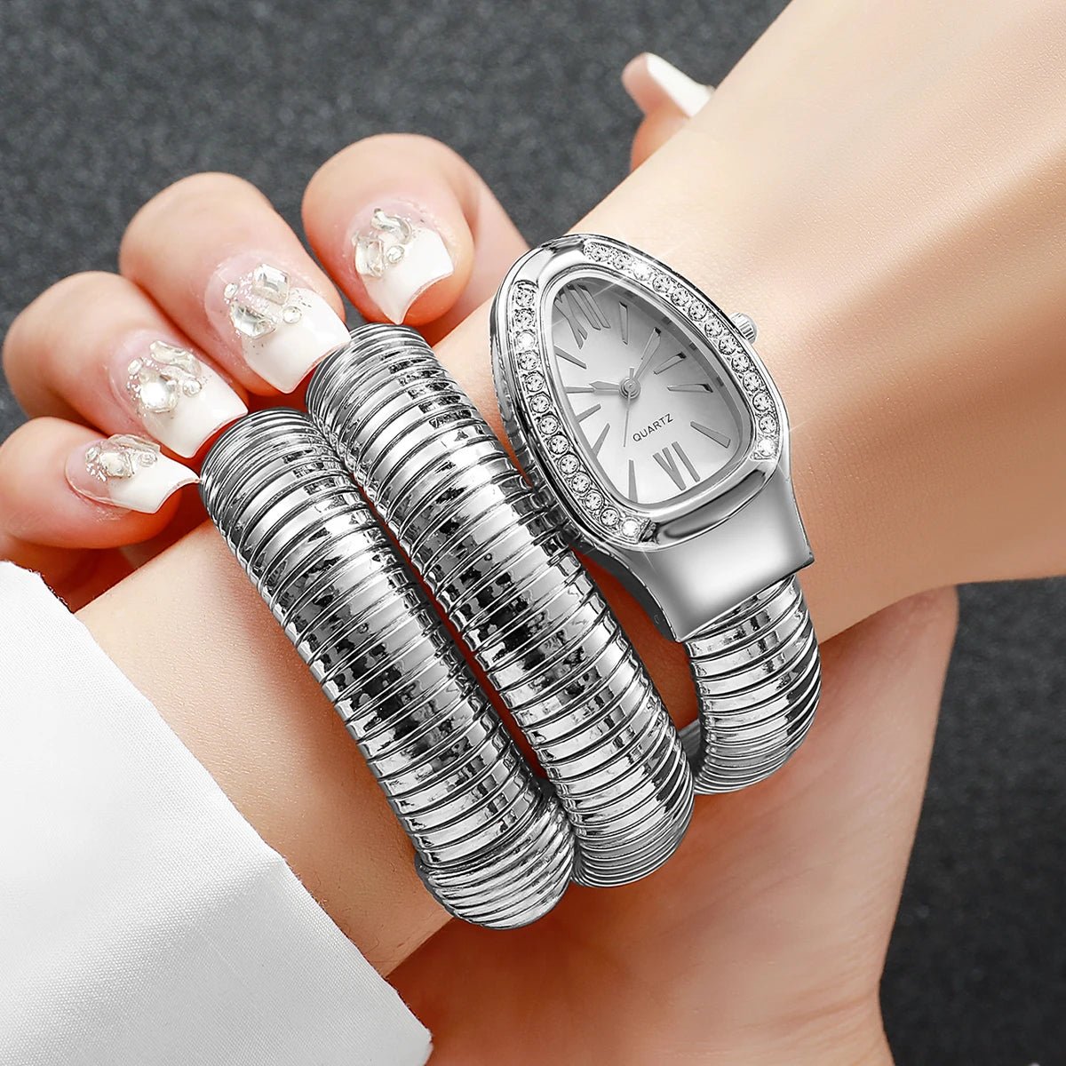 Women’s Snake Shape Quartz Watch – Luxury Rhinestone Roman Dial