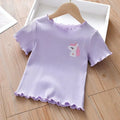 Girls Embroidered Summer T-Shirt – Soft Ice Silk Ruffle Top for Toddlers