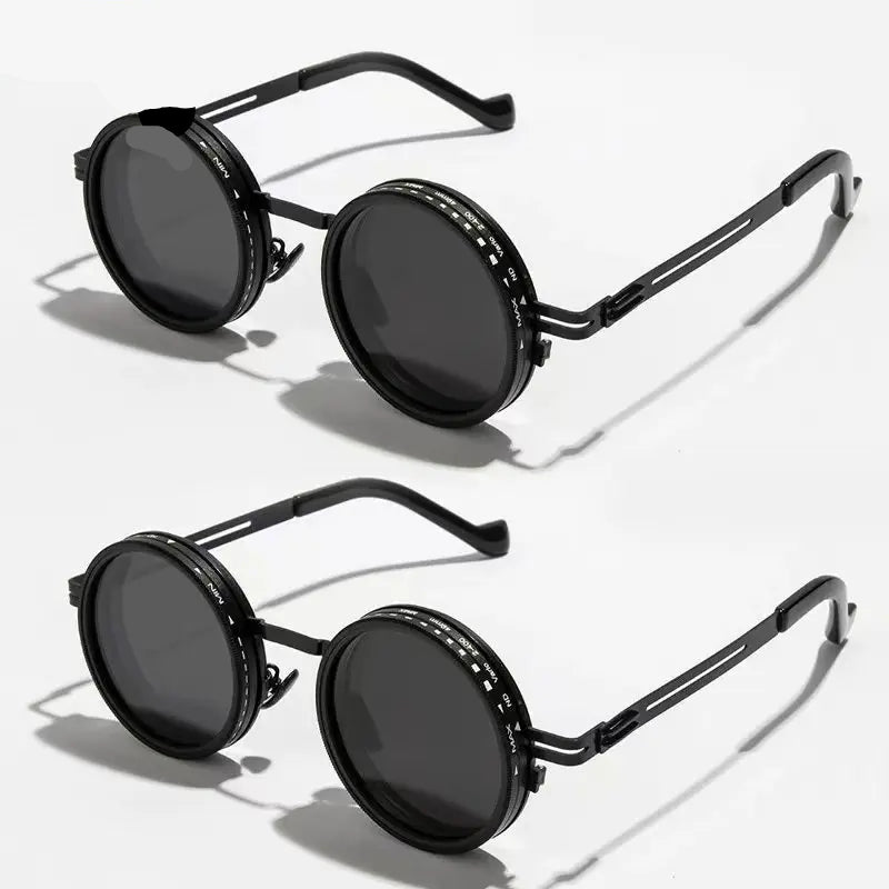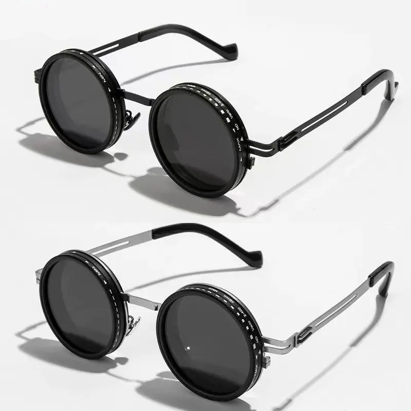 Upgrade your outdoor style with these handmade retro punk round sunglasses, designed with a bold circular frame for a timeless look. Featuring adjustable dimming ND9 lenses, these sunglasses adapt to light conditions, making them perfect for fishing, driving, vacations, and daily outdoor activities. The aluminium magnesium frame ensures durability while remaining lightweight, and the UV400 polarized lenses provide maximum protection against harmful rays, reducing glare for clear, comfortable vision. Ideal for both men and women seeking a unique yet practical accessory.