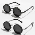 Handmade Retro Punk Round Polarized Sunglasses – UV400 Adjustable Dimming