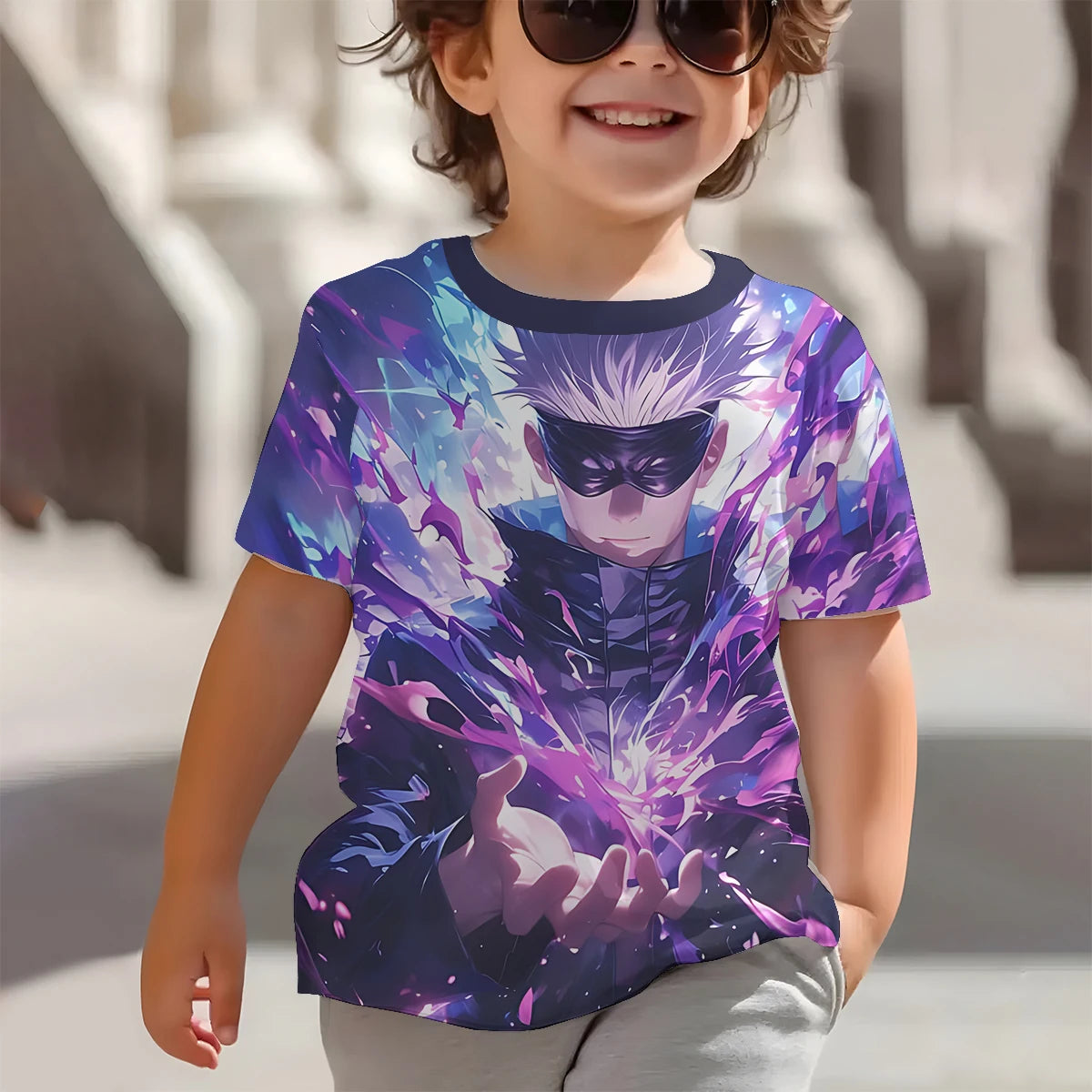 Bring anime style to your child’s wardrobe with the Jujutsu Kaisen Gojo Kids T-Shirt – 3D Print Anime Top for Boys & Girls, featuring the iconic Satoru Gojo. Made with breathable fabric, this tee is perfect for casual wear, cosplay, or outdoor activities.