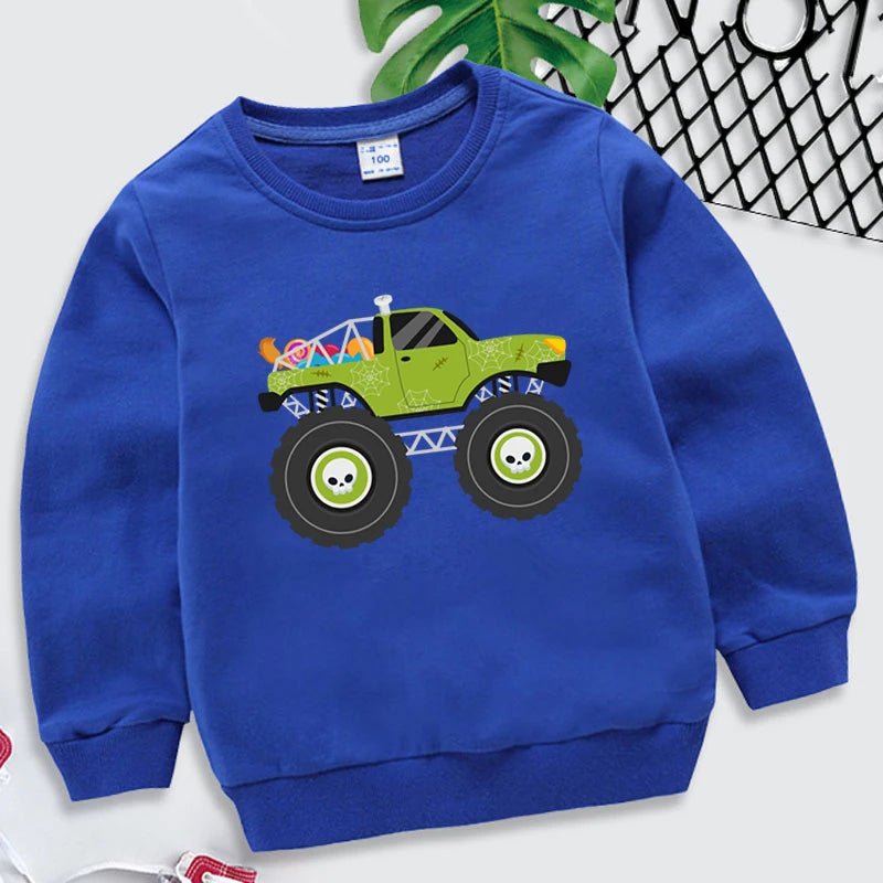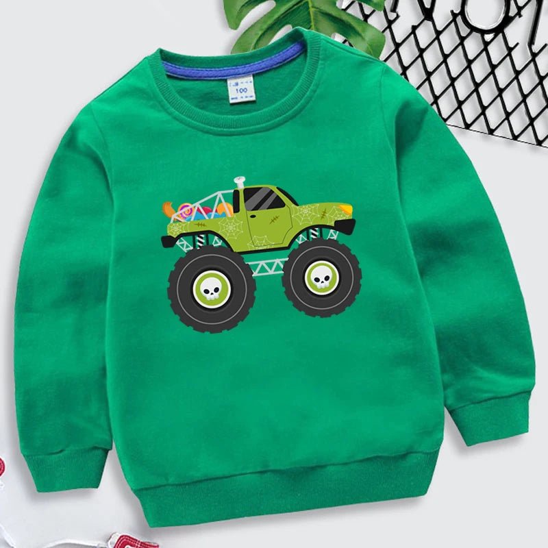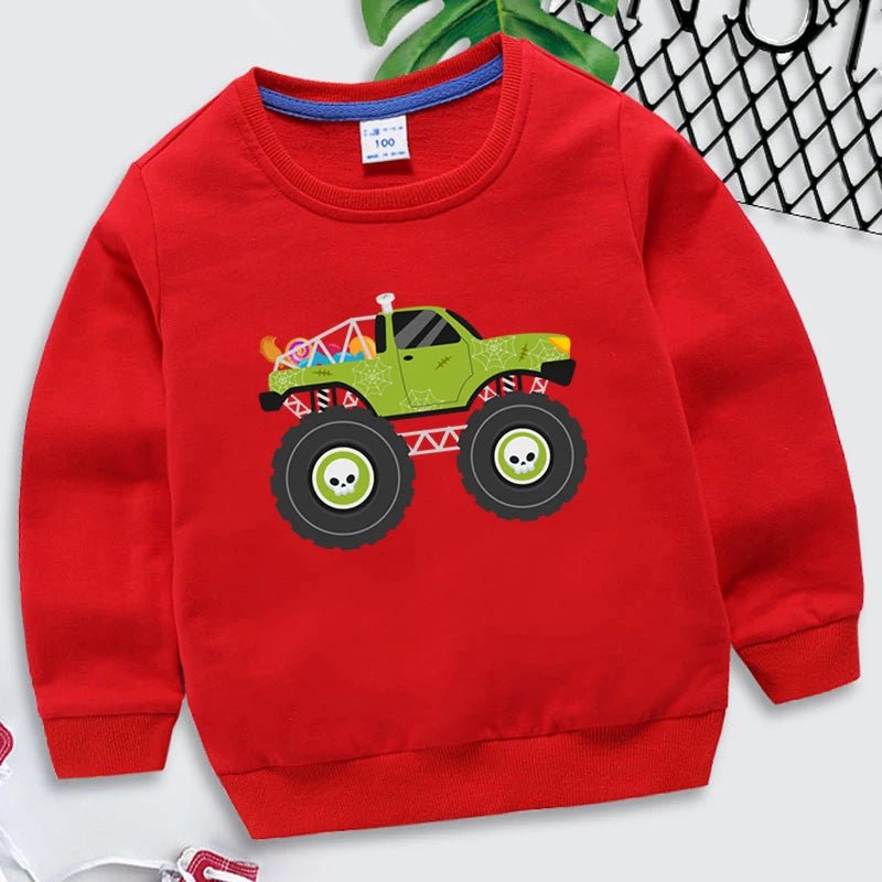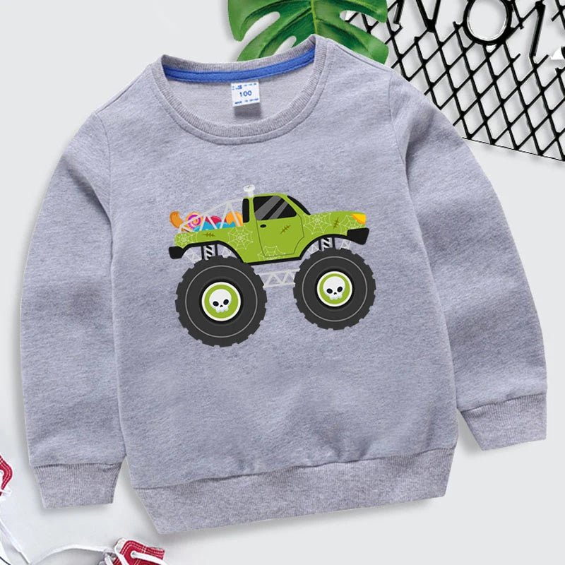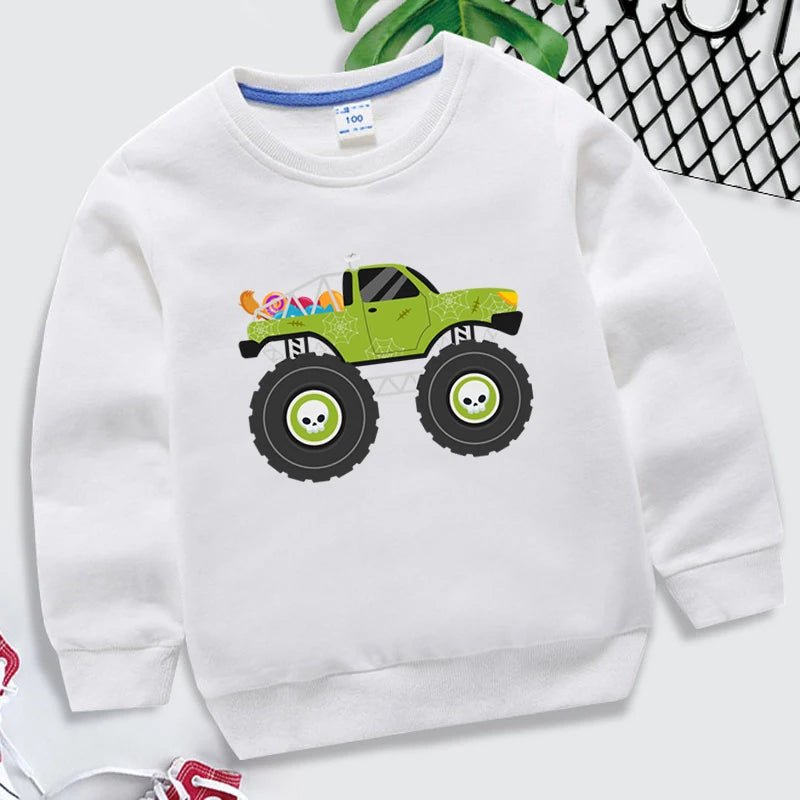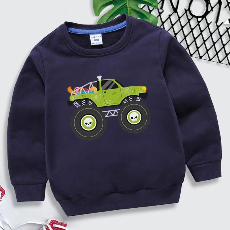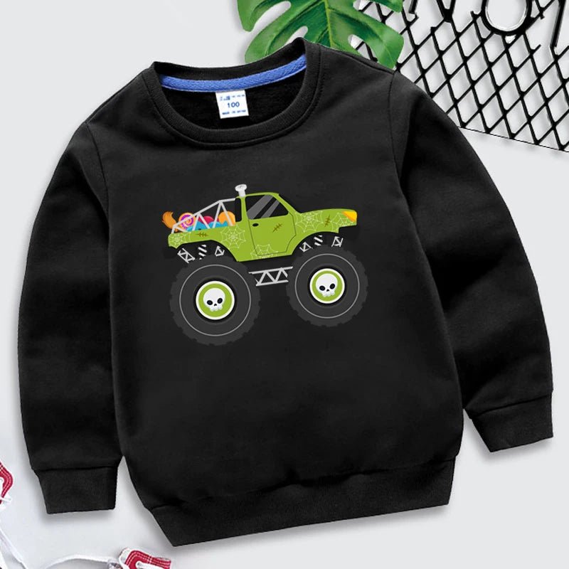 Kids Halloween Monster Truck Sweatshirt 2025 Cartoon Autumn Hoodie