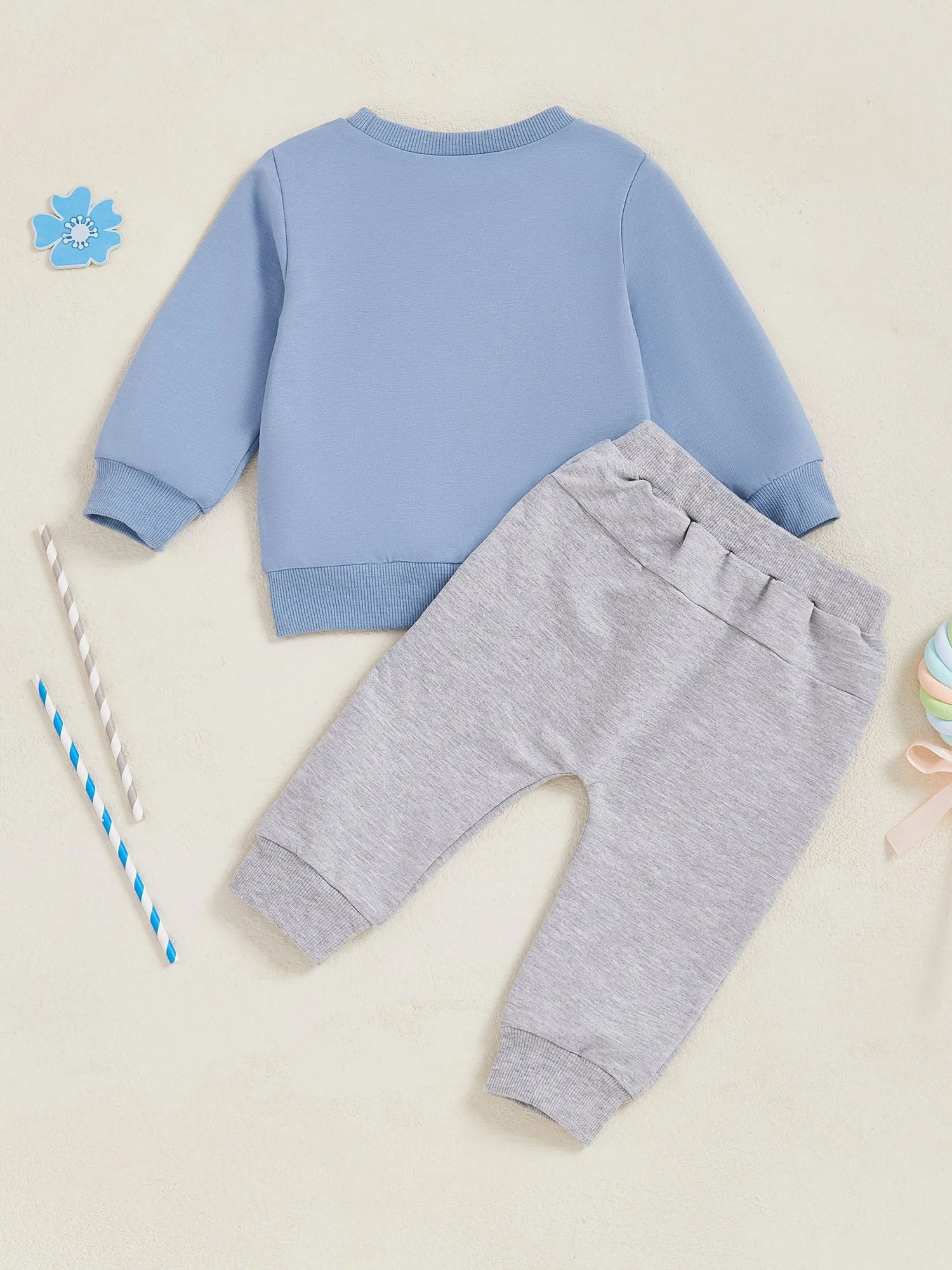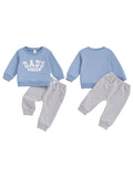 - Complete 2-Piece Set – Includes letter print crew neck sweater and jogger pants.