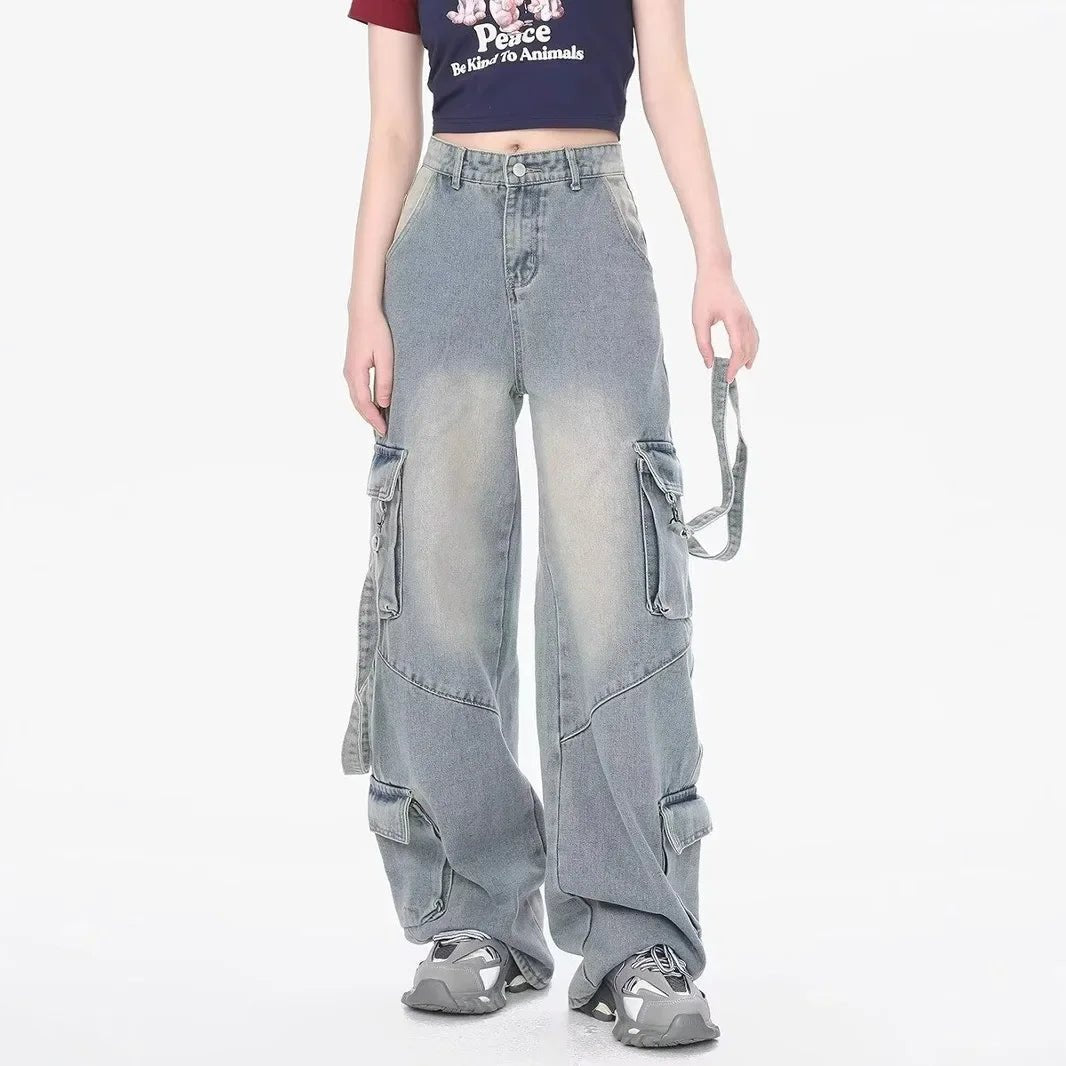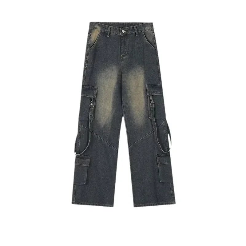 Step up your streetwear style with the Men’s Distressed Cargo Straight Loose Denim Jeans. Featuring high waist, patchwork detailing, and multiple pockets, these washed denim pants combine vintage fashion with a comfortable loose fit.