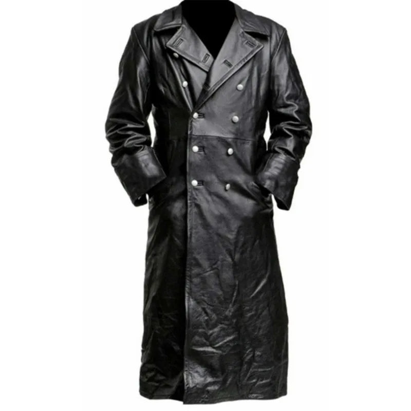 Men’s German Classic WW2 Military Black Leather Trench Coat