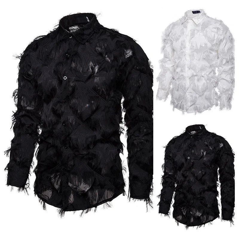 Features of Men’s Party Feather Turn-Down Collar Shirt
