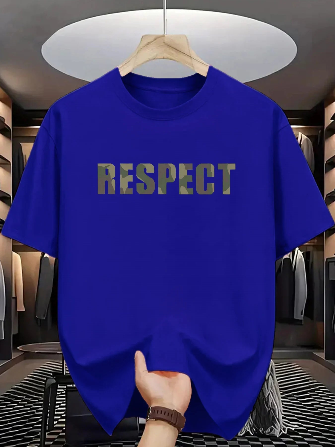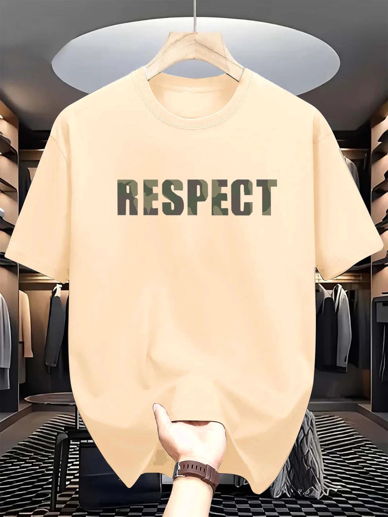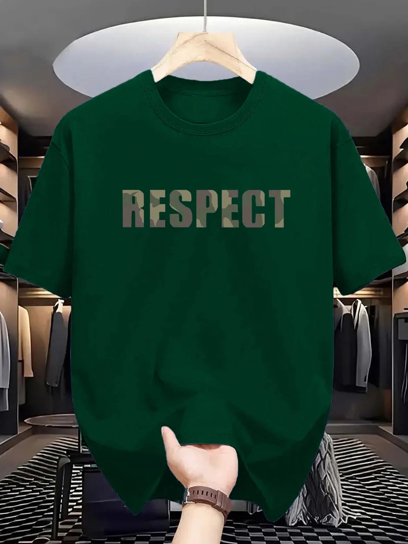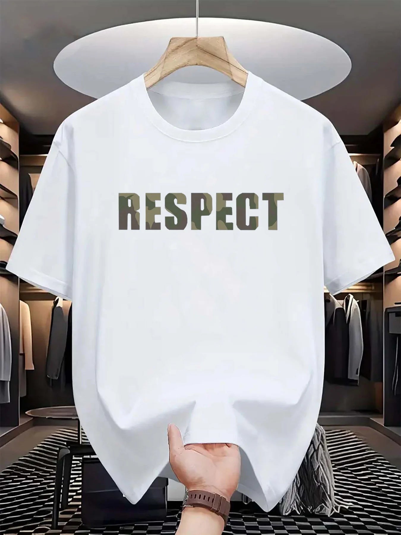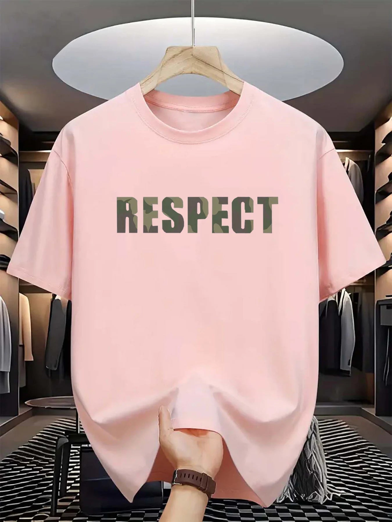 The Men’s Summer Cotton Camouflage Respect T-Shirt combines casual fashion with comfort. Whether for everyday wear or a stylish street look, it’s a versatile must-have for your summer wardrobe.