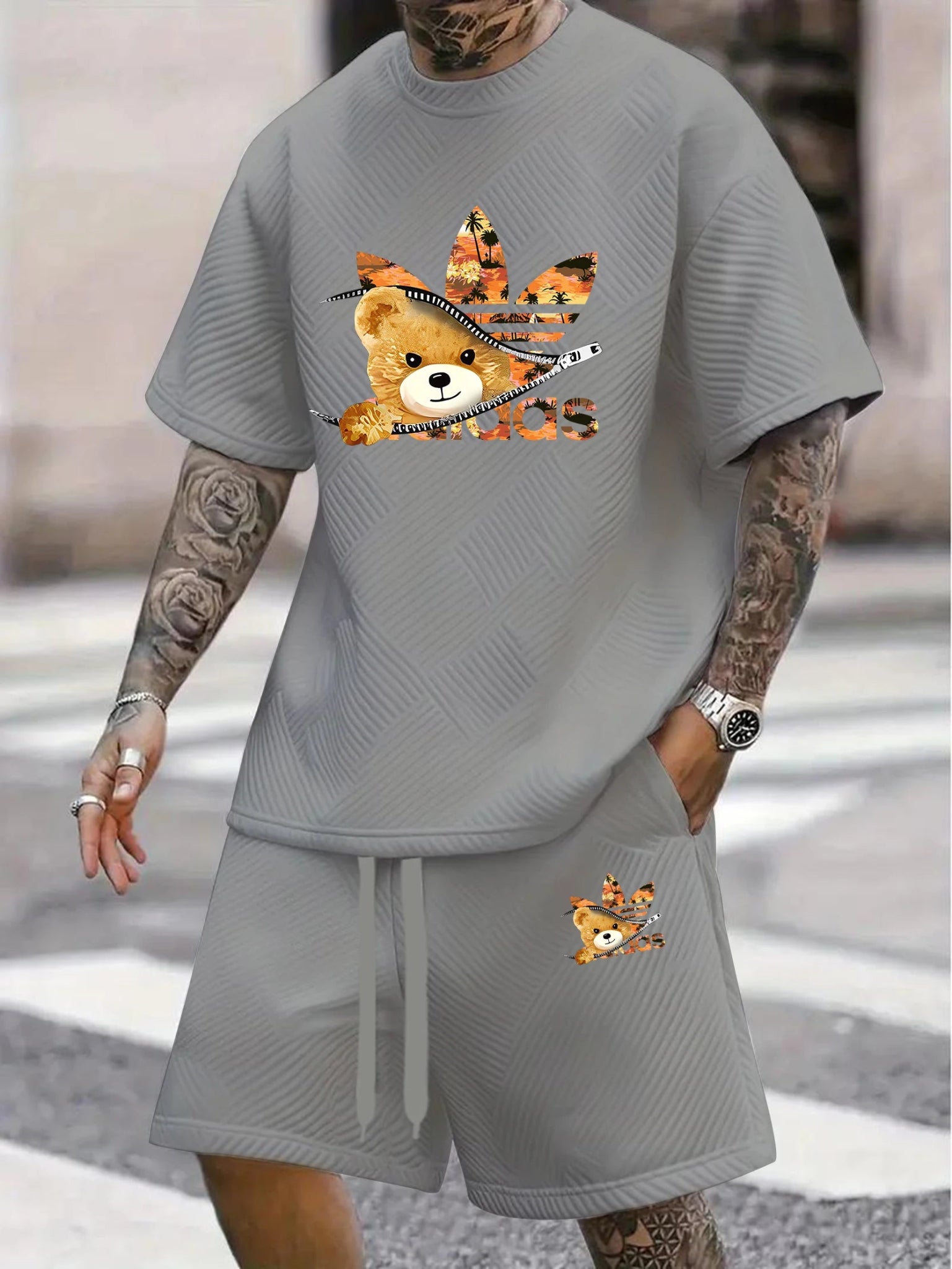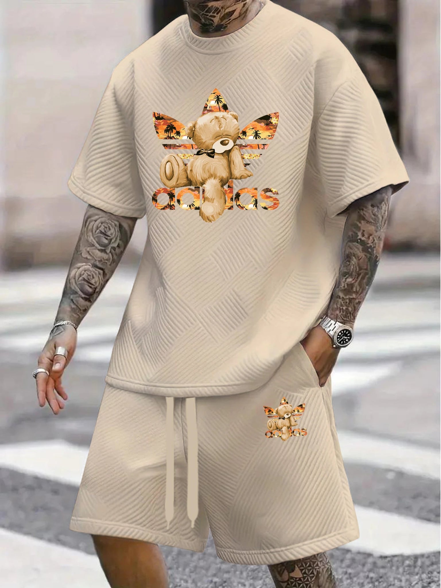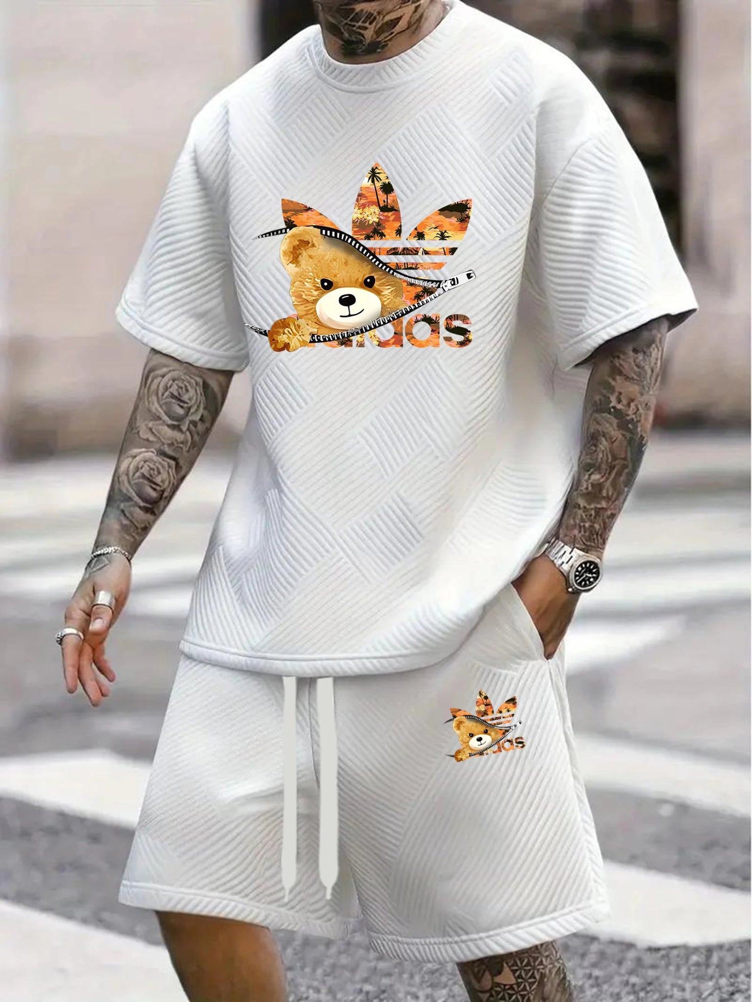 The Men’s Summer Jacquard T-Shirt & Shorts Set combines style and comfort. Perfect for sports, beach, or casual outings, it keeps you cool while looking fashionable.