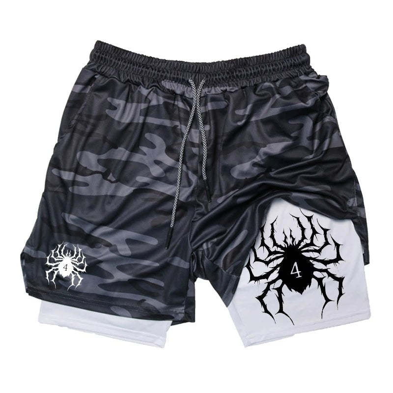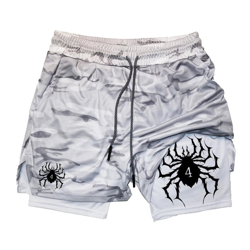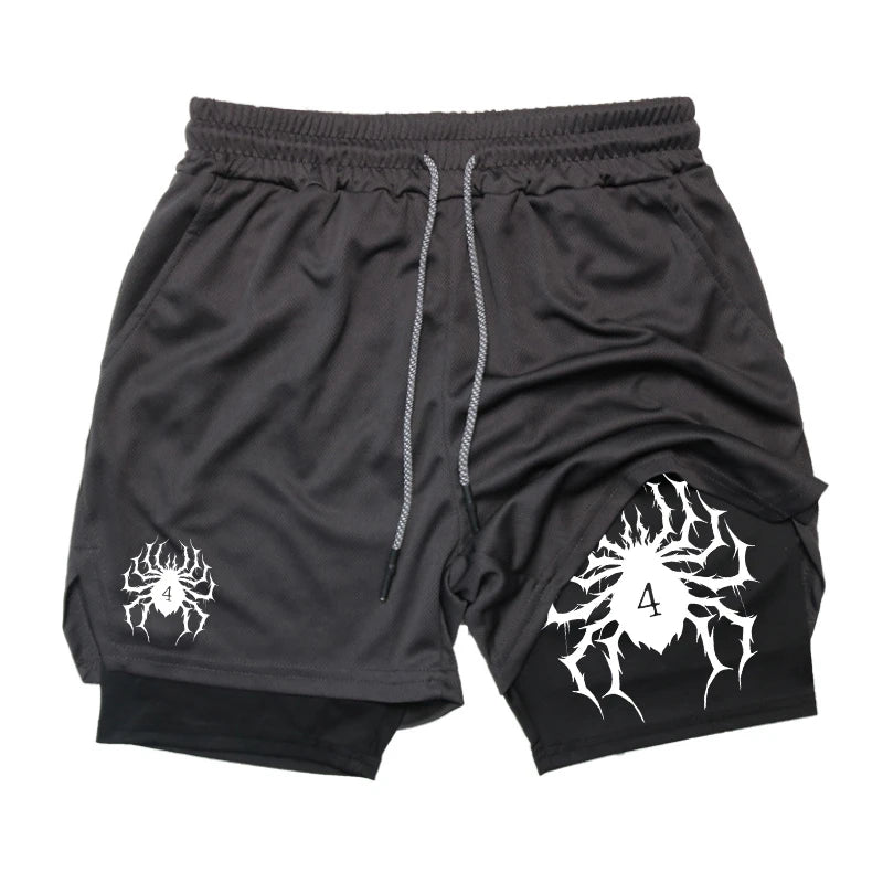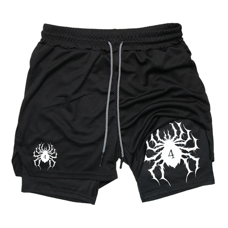 Push your limits in these 2-in-1 performance gym shorts for men, designed with a bold spider print and built-in compression lining for superior support and comfort. These activewear shorts feature a breathable, quick-drying polyester fabric ideal for intense workouts, runs, or casual athletic wear. Equipped with a secure phone pocket and a towel loop, they offer convenient functionality on the go. The inner liner helps reduce friction, while the outer short provides a stylish athletic look. Whether you're at the gym, running, or training outdoors, these shorts are made to move with you.