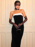 Women’s Off-Shoulder Strapless Maxi Dress – Backless Patchwork Bodycon Evening Gown