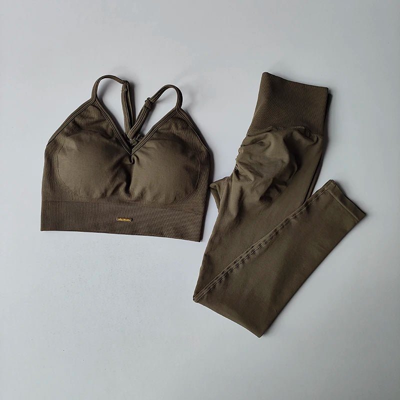 Seamless V-Neck Bra & Leggings Yoga Set – Quick Dry Fitness Wear