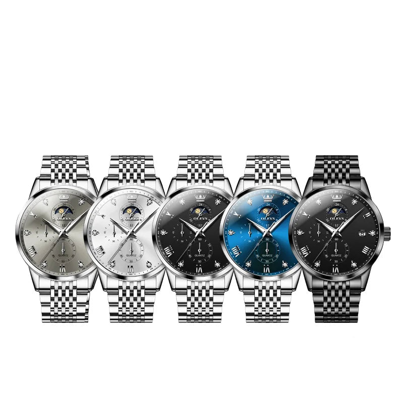 Stylish Men’s Quartz Watch – Moon Phase & Chronograph