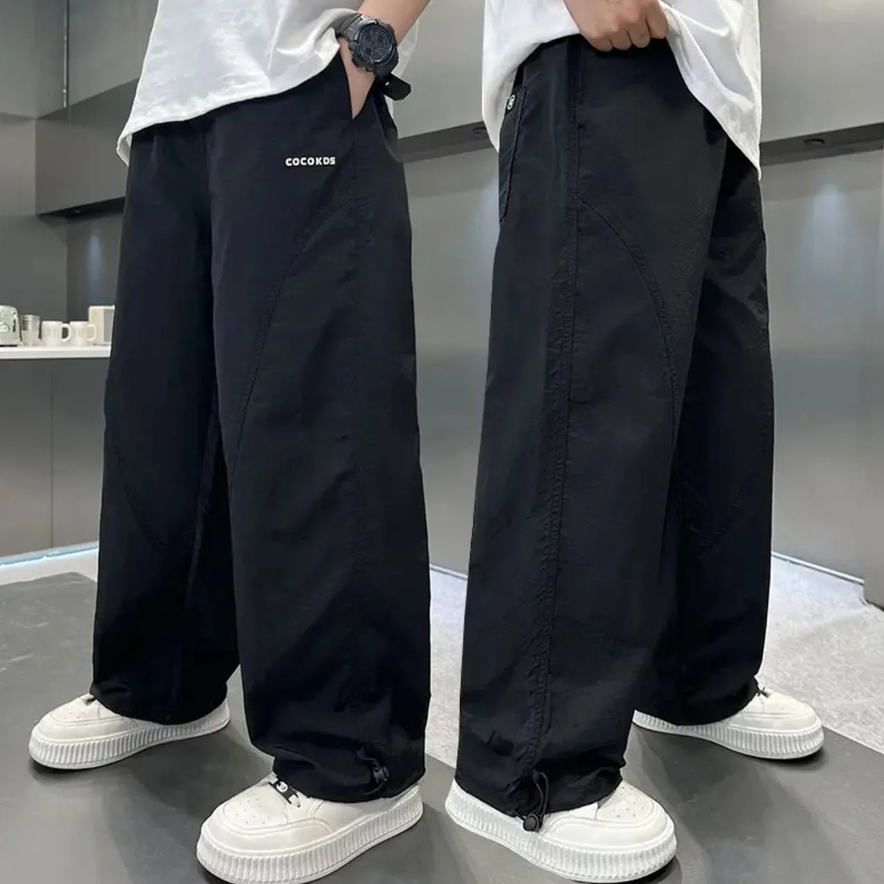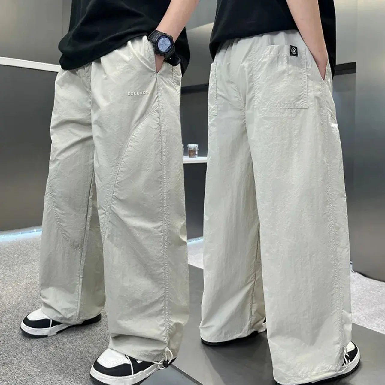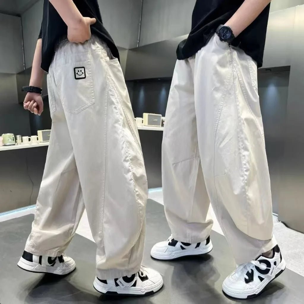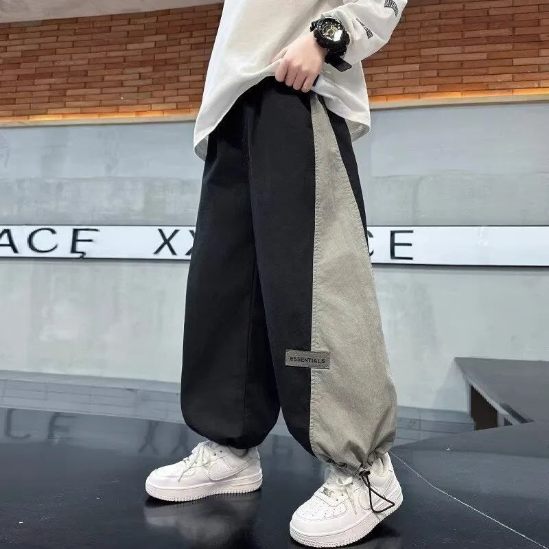 The Summer Boys Grey Sports Pants Casual Kids Sweatpants feature a high elastic waistband for a secure and adjustable fit, making it easy for kids to move freely during outdoor activities or casual streetwear outings. With a trendy patchwork design, these sweatpants combine fashion and practicality, giving your child a sporty, modern look.