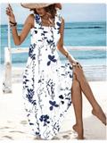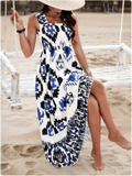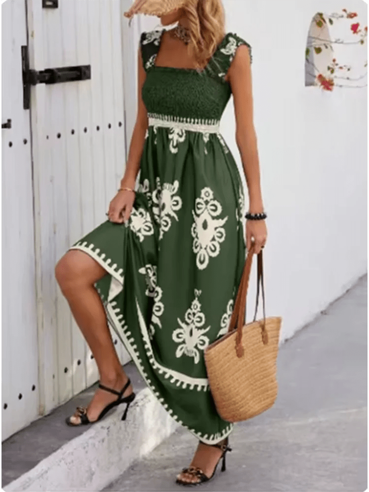 Women’s Square Neck Printed A-Line Dress – Sleeveless Summer Beach Outfit