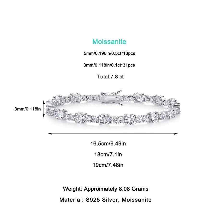 Unisex Moissanite Tennis Bracelet – 925 Sterling Silver