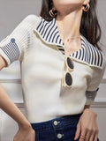 Women's Contrast Collar Knit Polo Tee – Summer Casual Top
