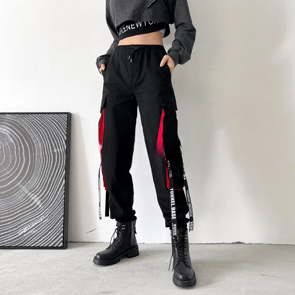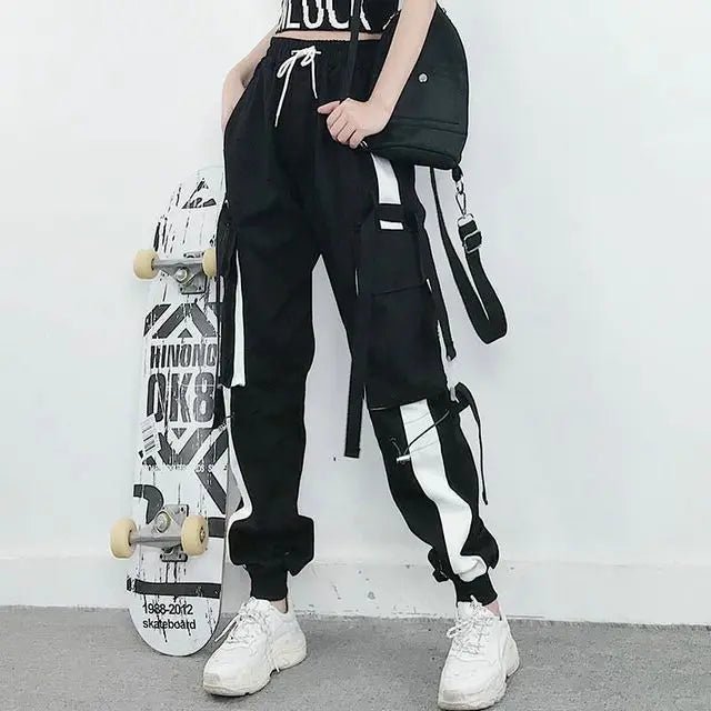 Women’s High Waist Cargo Harem Pants with Chain – Punk Streetwear Joggers