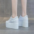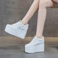 Women’s 12CM Leather Platform Wedge Hidden Heel Sneakers