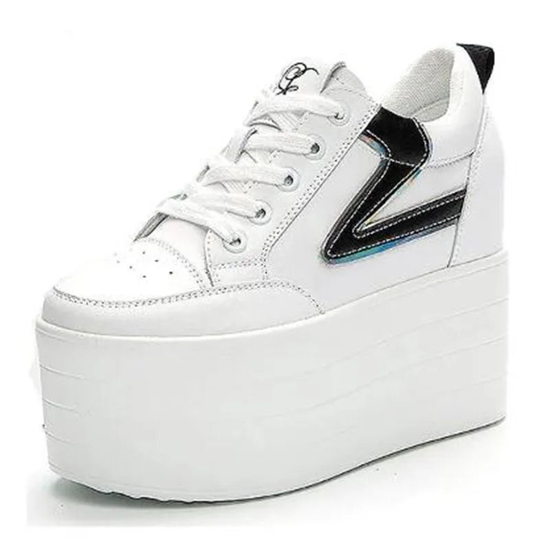 Step up your style with the Women’s 12CM Leather Platform Wedge Hidden Heel Sneakers. Crafted from genuine leather, these chunky vulcanized shoes feature hidden heels that add height while keeping you comfortable. Perfect for spring and autumn, they combine casual fashion with breathable comfort for daily wear.