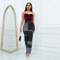 Patchwork detailing adds unique fashion appeal.