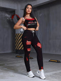 Women’s Red Stretch Skinny Jeans – Elastic Waist Distressed Denim Pants