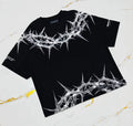 Express your bold street style with the Y2K Cyberpunk Gothic Cotton Graphic T-Shirt, featuring a thorn texture print and urban-inspired design. Perfect for fashion lovers who want an edgy yet comfortable fit.