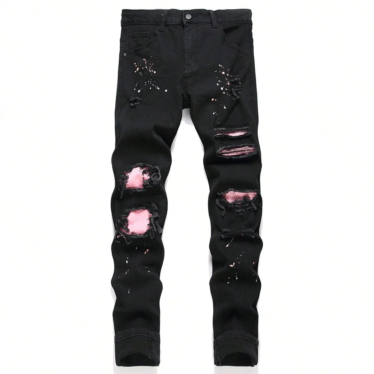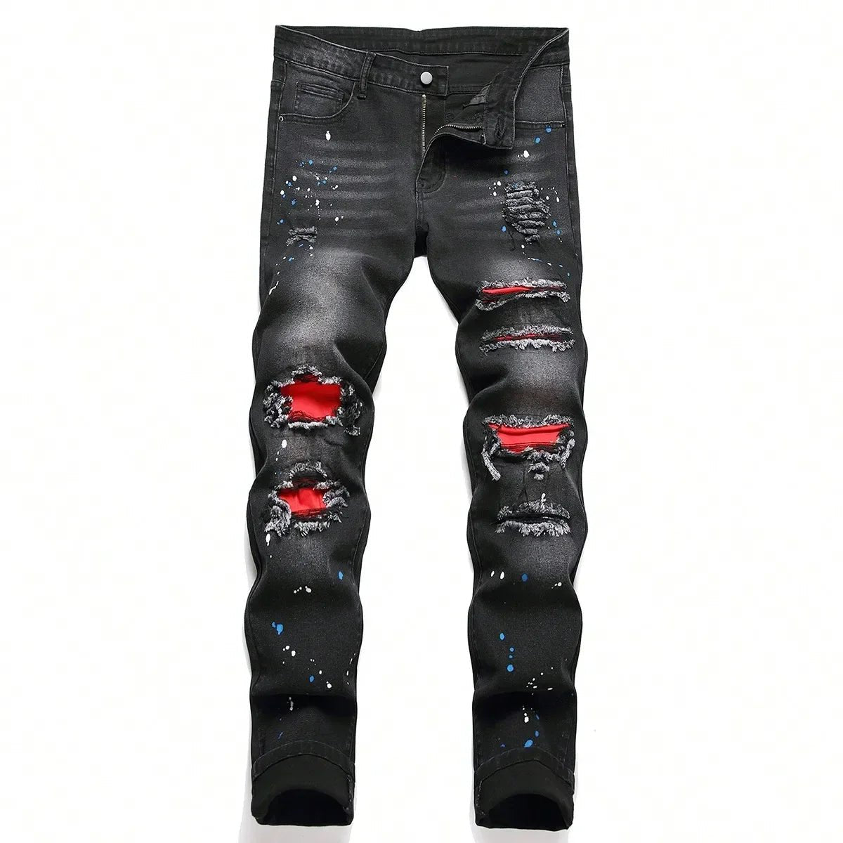 Y2K Men’s Stretch Skinny Ripped Patchwork Jeans